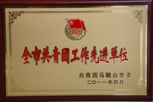 日前,在马鞍山市党建带团建暨共青团系统创先争优工作会议上,公司团委荣获马鞍山市“共青团工作先进单位”称号,受到共青团马鞍山市委的隆重表彰。