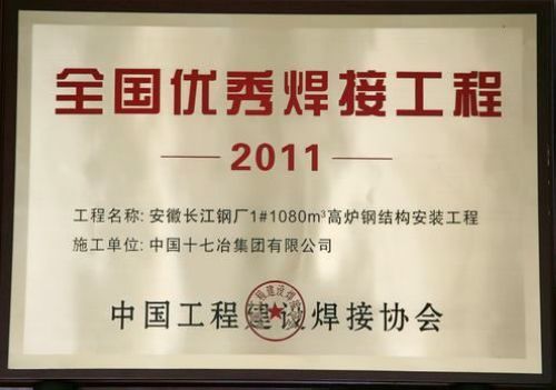 日前,中国工程建设焊接协会2011年度“全国优秀焊接工程评审结束,中国十七冶集团施工的内蒙古星光煤炭集团特钢工程福州港罗源湾港区将军帽作业区一期工程钢管桩项目安徽长江钢厂1#1080m3高炉钢结构安装工程等三项工程荣获“全国优秀焊接工程”奖。
