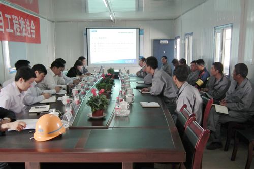920下午,内蒙古德晟实业集团金属制品项目一期炼钢连铸项目召开工程推进会。公司副总经理唐灶荣,总经理助理、项目监管部部长唐克斌,副总经济师、预结算部部长张伟典,人力资源部副部长李静,项目监管部副部长赵峰,冶金工程技术公司经理范文刚以及水泥工程技术公司、达成公司分管领导参加了会议。