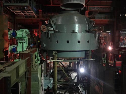 该转炉为目前我国国内出钢量最大的转炉,其炉壳重260t,托圈重320t,倾动装置重170t。施工中,项目部精心组织,利用此前安装好的加料跨500t行车吊装,采用我公司专利技术“组合法安装超大型转炉”进行吊装,安装时间较以前大大缩短。该节点的顺利完成,为20123月转炉热负荷试车奠定了坚实的基础,受到了业主的高度赞扬。