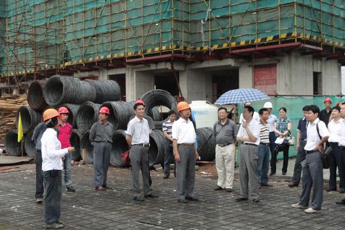 610上午,安徽省政府开展与中央企业合作发展项目督查组韩永奇主任一行在当涂县副县长阚青鹤、十七冶当涂县安置房项目经理徐兆平的陪同下冒雨参观了我公司承建的五星佳苑安置房工地。