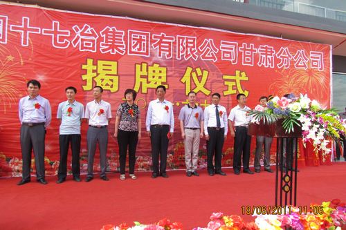 618上午10:58分,随着喜庆的炮鸣声,中国十七冶集团甘肃分公司正式揭牌成立。公司总经理喻世功、酒钢集团宏兴钢铁股份公司总经理李志磊共同为中国十七冶集团甘肃分公司揭牌。