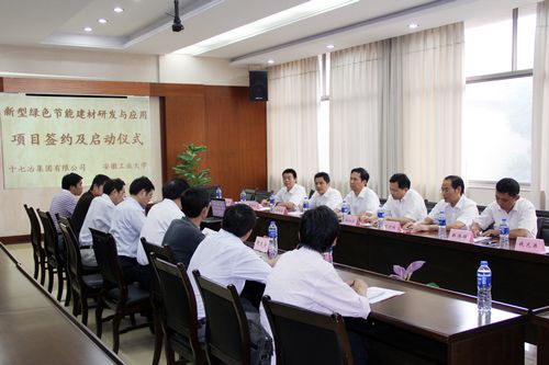 911下午,十七冶工程科技公司与安徽工业大学“新型绿色节能建筑研究与应用项目启动产学研合作签字仪式”在安徽工业大学会议中心举行。集团公司总工程师尹万云和安徽工业大学副校长魏先文出席签字仪式。工程科技公司总经理唐世敏与安工大科技处处长阎军代表双方在合作协议书上签字。
