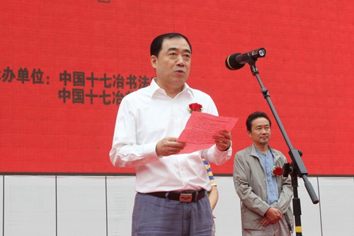中国十七冶集团纪委书记、副总经理蔡进,马鞍山市文联调研员、书法家协会主席袁诚,中国冶金美术家协会副主席陈冰,马鞍山市美术家协会主席许峰,中国冶金书法家协会副主席汤小建,中国冶金美术家协会副主席郑兹坤,中国十七冶集团党委工作部部长杨绍凤、副部长华群,还有我市书画家、书画爱好者、参展作者和公司员工代表约350人参加了开幕式。