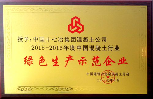 1030日,中国十七冶集团混凝土公司收到“20152016年度中国混凝土行业绿色生产示范企业”奖牌。此项荣誉的获得,进一步提高了企业在混凝土行业的社会知名度。