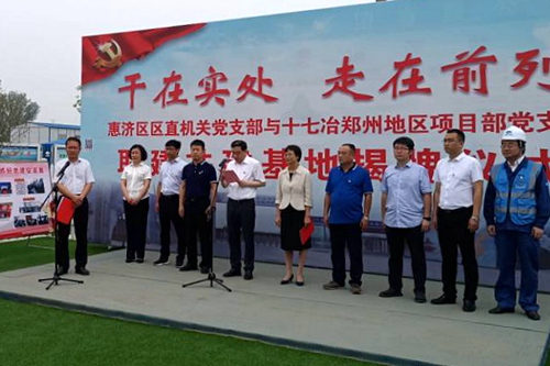 6月25日,中国十七冶集团下辖住建分公司郑州地区项目部党支部与惠济区区直机关党支部联建共建基地揭牌仪式在大河社区安置房项目举行,开启了“干在实处,走在前列”为主题的党建系列活动,为建党97周年献礼。惠济区委常委、组织部长孙梅,副区长黄国彦,中国十七冶集团纪委书记、副总经理蔡进,中冶置业(安徽)公司党委书记徐良蓉等出席了仪式。