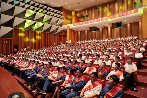 7月17日下午,中国十七冶集团举行2018年新员工入职典礼。公司在马领导,总经理助理、安全总监、副三总师、总部机关部门负责人,各二级单位党政主要领导、人力资源系统分管领导、人力资源部、团委负责人,以及部分杰出青年、优秀青年岗位能手、优秀师徒代表和2018年加盟十七冶的新员工等共计460人参加了典礼。