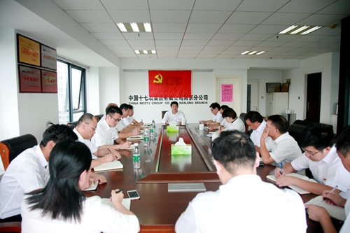 在随后的调研中,喻世功董事长与班子成员进行座谈交流,听取了工作汇报和需要集团协调的问题,并强调:几年来十七冶为做大做强,潜心钻研经营之道,一心一意谋发展,把业务积极向外拓展和延伸,先后成立了多家区域分公司,拓展区域业务,强力打造中国中冶品牌。从实际运行情况看,各区域分公司充分发挥作用,为十七冶持续较快发展提供了有力支撑,但在市场拓展上还要加强,要进一步发挥国有企业资源优势和良好信誉,抓住四季度机遇,努力多签大单和优单;要增强先算后干、算好算准的经营意识,对标业绩突出的单位,认真学习别人先进的技术、制度、管理经验;要增强社会责任感,坚定不移贯彻创新、协调、绿色、开放、共享的发展理念,做好传统施工同时,要在创建绿色工地上面做文章,必须树立和践行“绿水青山就是金山银山”的理念,进一步加大环境保护力度,让社会各方面满意,在竞争激烈的南京片区唱响中国中冶品牌,扎实体现央企的责任担当。