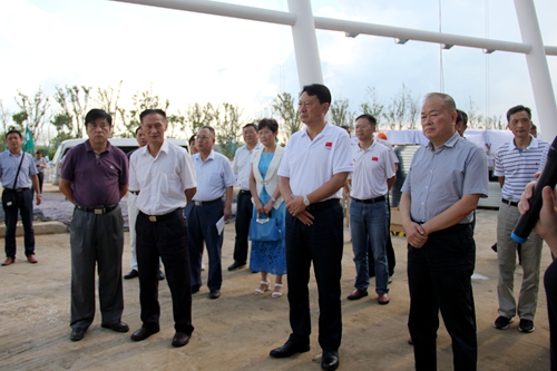 8月16日,安徽省体育局党组书记、局长高维岭一行到中国十七冶集团承建的滁州高教科创城文体活动中心项目调研,滁州市市委常委、宣传部长李树参加调研。