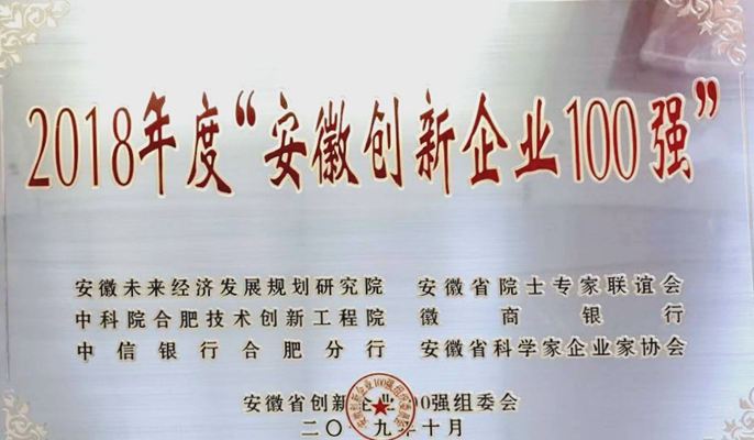 本次“安徽创新企业100强”是由安徽未来经济发展规划研究院、安徽省院士专家联谊会、中科院合肥技术创新工程院等共同组织,历时3个月,从安徽省500多家企业中,本着自愿、公开、公正、公益的原则,按照研发人员、研发试验设施条件、企业知识产权核心技术等综合条件评选而出。
