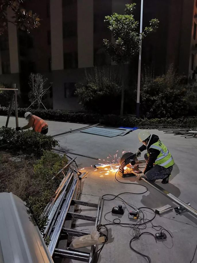 十七冶的医护人员不顾个人安危勇赴前线,而项目一线的员工同样当仁不让。2月5日晚上,公司在接到马鞍山郑蒲港新区需要建设隔离点的任务后,立即组织郑蒲港项目部组织14名建设者组成应急施工突击队,前往重灾区白桥镇进行集中隔离点建设,确保100多名隔离人员安全隔离。突击队进场后一刻也不耽误,一刻也不懈怠,经过10个小时的连夜作业,完成安装彩钢板围挡120米、电热水器14台、铝合金窗加固110扇、组合床拆装30张、敷设电缆160米及电缆终端头制作12只,确保隔离点顺利投入使用。2月11日,马鞍山“宁博一体化”项目部对当地20公里内的小区、道路60个点进行围挡封闭,成功封闭集装箱值班室6座,各类围挡100多处,围挡封闭长度共计1500余米。