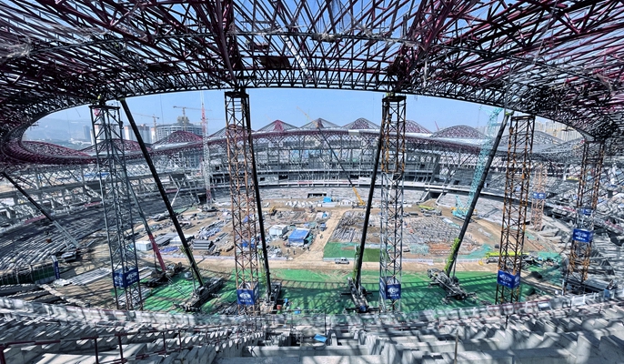 兰州奥体中心体育场2万吨钢结构罩棚成功卸载