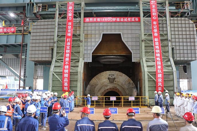 6月3日上午,中国十七冶集团冶金分公司承建的宝钢德盛新炼钢(一步)工程1#AOD炉倾动试车。宝钢德盛不锈钢有限公司副总经理蒋兴元、总经理助理李峰、炼钢总监陈为本,中国十七冶集团副总经理、冶金分公司经理周金龙等相关领导参加了试车仪式。