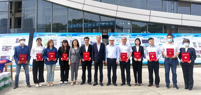 杨勇义主席一行为获奖的市模范职工之家、市模范职工小家、市巾帼文明标兵、市优秀工会工作者等获奖者颁发了荣誉证书,并认真听取了十七冶技术中心大厦项目部工程进展情况,特别是十七冶新时代职工文明实践中心的建设情况。杨主席关切的询问十七冶援建上海临港方舱医院和建设者们返马安排,高度赞扬了十七冶全体参建勇士敢于担当、不畏艰辛的劳动者奉献精神。恰逢五一国际劳动节来临之际,主席向项目一线的建设者们致以诚挚的节日问候并强调:项目部要在确保疫情防控安全到位的前提下,抓好工程质量和安全生产。夏季即将到来,基层工会要关爱一线作业职工,提前做好夏季防暑降温准备工作,保障职工的安全健康。