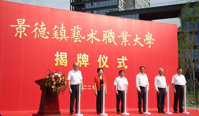 孙菊生、刘锋、胡雪梅、汪立夏、俞小平、吴隽等领导共同为景德镇艺术职业大学揭牌,揭牌仪式由景德镇市委副书记、市长胡雪梅主持,刘锋、汪立夏、刘子力等分别致辞。