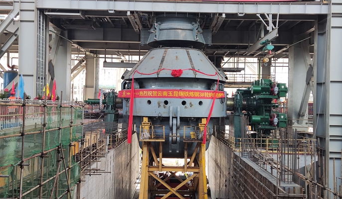 10月25日上午,由中国十七冶集团冶金工程技术分公司承建的云南玉昆炼钢工程项目3#转炉推炉成功。3#转炉顺利安装就位,标志该工程已进入设备、电气、管道安装的高峰阶段。