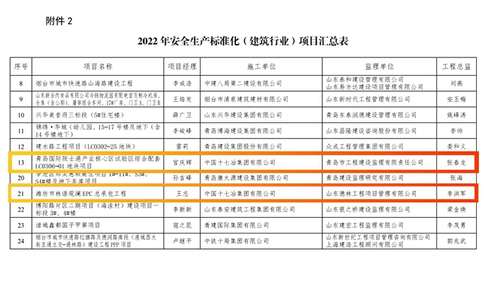 1月3日,中国十七冶集团收到中国安全产业协会建筑行业分会表彰文件和奖牌,公司获评“2022年安全生产标准化(建筑行业)企业(单位)”称号,山东分公司潍坊林语观澜项目、青岛分公司青岛国际院士港项目获评“2022年安全生产标准化(建筑行业)项目”称号,王永吉获“2022年安全生产标准化(建筑行业)带头人”称号。
