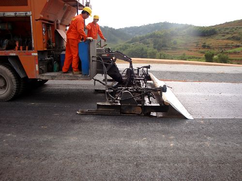 马梧路面SBS改性乳化沥青稀浆封层一次试铺成功