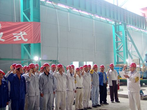 911上午,湘钢项目部党工委组织新党员,在120t转炉平台上举行了一场深刻的入党宣誓仪式,参加宣誓仪式的6名新党员都是在湘钢项目工程施工中表现突出的积极份子。仪式由项目经理史朝华主持,新老党员面对鲜红的党旗举起了右手,在湘钢党工委书记周聚敏的领宣下,向党宣誓。宣誓结束后,预备党员孔炯代表全体新党员、机电公司董晓星代表入党积极分子在仪式上发言,他们表示一定要忠诚企业,爱岗敬业,努力实践公司的企业文化理念,树立“高效严谨,精细务实”的企业作风,落实康董事长对湘钢工程的讲话精神,努力工作,为确保10.15热负荷试车,做出我们的贡献。