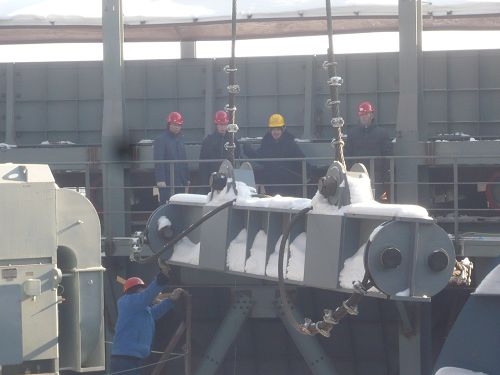 一线施工队伍为了争取时间多干活,把食堂搬到工地,在零下20多度的恶劣天气条件下铲雪抢工期。烧结室235米平台上北风呼呼、焊光闪耀,工人们挂着安全带在快而有序的忙碌着,夜晚加班至八、九点钟,只要有一点施工条件,他们就组织力量进行施工,保证工程进度和安全、质量。