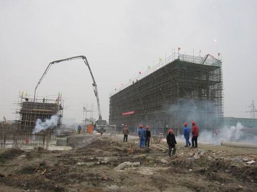 26下午16时,常熟龙腾特钢工程转炉混凝土基础全部浇注完毕,实现了主控楼顺利封顶的目标,这标志着龙腾特钢炼钢项目土建基础工程施工重要节点的完成。