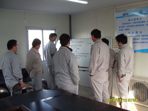 面对工期紧、任务重等特点,项目部发杨“高效严谨、精细务实”的企业作风,实行早晚例会制度,对当天的工作和任务进行部署和小结,使各部门及责任人明确自己的任务,全心全意把该工程打造出精品来。