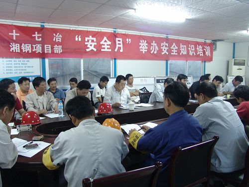6月6日,湘钢项目部以开展“安全生产月”活动为契机,举办了一期由项目部领导、两级项目部管理人员,专职安全员和外协队伍负责人40余人参加的安全知识培训。