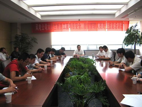 风力发电工程公司经理高胜勇作了学习动员讲话,对风力发电工程公司15月份的生产经营形势进行了通报和分析。他要求大家珍惜这次学习的机会,认真领会,在施工中按施工规范标准严格把关,按公司的制度来管理,养成严谨的工作习惯,做到学以致用。