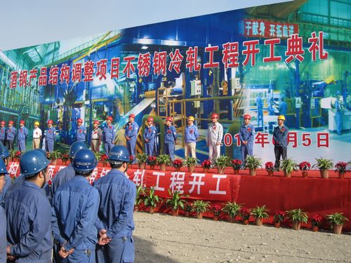 65上午,受酒钢不锈钢厂的邀请,中国十七冶酒钢项目部作为唯一一支外部施工单位代表,参加了酒钢产品结构调整项目不锈钢冷轧工程开工典礼。