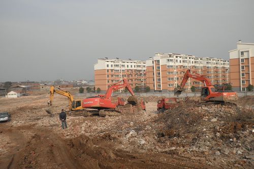 金安小区安置房是马鞍山市城市建设的配套工程,被市委、市政府列入民生工程组织实施。场地平整工程是整个金安小区工程的首要节点,项目部对此高度重视,发扬“高效严谨、精细务实”的企业作风,精心组织,周密安排,工地上共投入3台挖掘机、3台推土机、11台土方车,每天晚上都加班干到12点,每天平均挖运土方量8000方,目前已累计挖运土方量5万方,确保在15天内将场地平整工程全部完工。