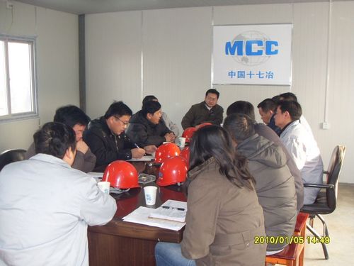 项目部经营副经理邱恩明结合本工程签订的合同条款,预测了该工程在经营工作方面存在的一系列风险因素,对参加会议的相关人员做了解答。项目部经理周金龙、党工委书记兼副经理陈鑫慧对抓好工程的二次经营工作做了汇报。
