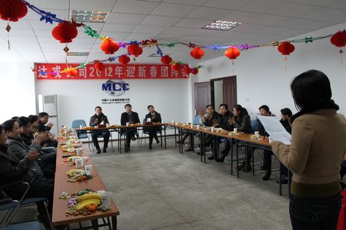 120下午,达成公司举办2012年迎新春团拜会,公司领导班子、各作业处、厂负责人和机关全体员工欢聚一堂,喜迎新春,共话未来。
