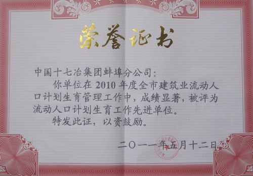 城建工程技术公司副经理兼蚌埠金融中心项目部经理赵俊华、项目部党支部书记尹开金两同志在会上还被授予“流动人口计划生育工作先进个人”荣誉称号。
