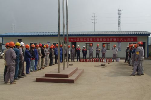 527上午,十七冶马钢工程项目经理部在现场大院举行了夏季消防安全灭火演练。