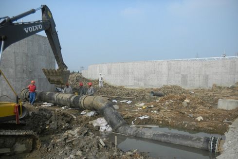 机电、管道安装中难度最大的是地下管道安装。由于地下淤泥层受到地面重力荷载的挤压,淤泥层在开挖的工作面不断流动,边挖边淤,致使仅需一米宽、一米深的管道敷设沟槽最后挖成了“一条河”,不仅加大了工程量,而且延误了工时。面对困难,施工人员坚持每天挖泥不止。随着一条条泥河的挖填延伸,一条条管道安装就位。