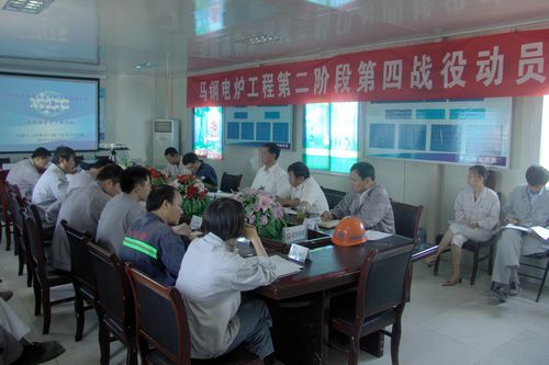 92上午,马钢工程项目经理部召开马钢电炉工程第二阶段第四战役动员会,擂响了9月决战的战鼓。工程由安装全面转入调试阶段。