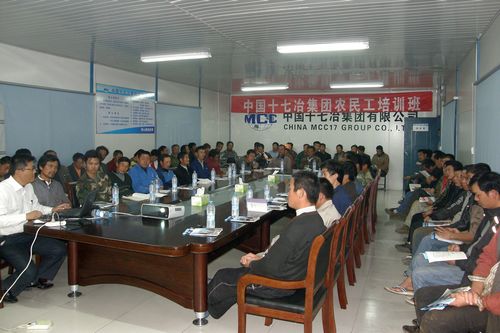 1129晚,由十七冶市政工程技术公司承办的农民工技能培训班在十七冶花山区安置房二期工程项目经理部农民工培训学校内准点开班授课。市相关部门负责人、集团公司人力资源部副部长杨昌贵、市政工程技术公司党委书记陈光山、总工程师兼项目经理刘伟等出席了开班仪式。