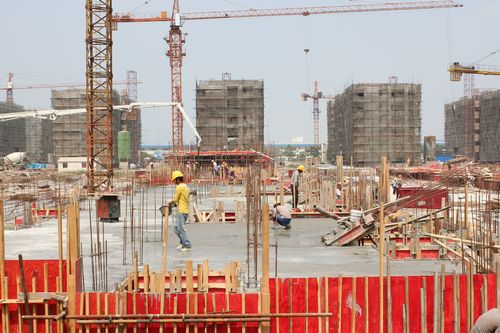 为安全、优质、高效地建好该工程,项目部以精细化管理克服了地质复杂、雨天较多等困难,采取地板浇筑与顶板施工并进的施工方法,有效提高了施工速度,结构施工的质量和安全都得到了保障。与此同时,与顶板连体的6栋楼房的一层结构也具备了砼浇筑条件。