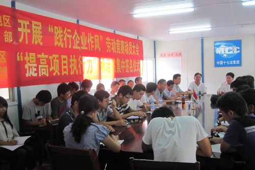 动员会上,项目党支部书记尹开金传达了集团公司开展“践行企业作风”劳动竞赛及“提高项目执行力”承诺书集中签名活动的文件精神,要求全体员工在即将开始的大干热潮中,模范地践行企业文化,努力以自己的卓越表现,为提高项目执行力发挥积极的作用。项目经理余世红宣布了大学科技园·城市之门工程等三个项目部开展新一轮劳动竞赛活动的节点工期和管理目标,并代表三个项目管理人员郑重承诺,确保实现两级公司交给的各项任务。