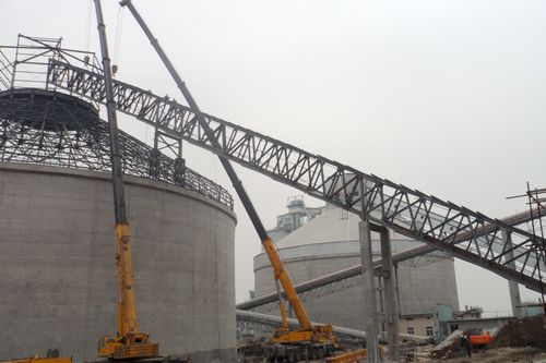 窑头斜拉链总重约60t,跨度85.305m。吊装施工前,项目部充分准备,制定科学吊装计划,采用钢结构廊道分跨制作、分跨吊装的方法。用240T200T汽车吊分三段配合吊装完成。窑头斜拉链顺利吊装为全椒海螺二期工程按期点火创造了有利条件。