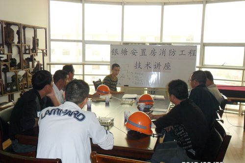 针对马鞍山市银塘组团安置房工程的实际情况,授课老师详细的讲解了自动喷淋灭火系统、火灾自动报警系统、室内消火栓系统、机械排烟系统等相关理论知识,对建筑消防系统的一些标准规范进行了解读,并和参会人员就施工过程中的一些技术问题进行了交流。