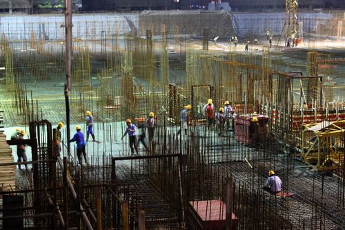 鼎邦家和园3#大基坑是芜湖大桥开发区目前最大的地下人防工程。之前由于受多雨天气等因素的影响,工程进度一度受阻。为抢回工期,项目部迅速组织了200多名劳动力,抢抓晴好天气,昼夜加班连续作业。到423止,大基坑施工大干已绑纲筋1000多吨,支模板3500平方米,浇筑砼近2000立方米