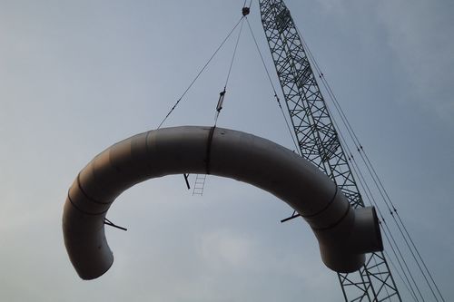 此次吊装的热风围管直径2.346m,围管中心标高16.9m,围管总重56t。项目部充分发扬“高效严谨、精细务实”的企业作风,结合“树正气、讲责任、比贡献”主题劳动竞赛活动,精心组织,科学应用公司“高炉热风围管高空分段就位安装方法”专利技术,减少了高空作业,缩短了工期,降低了施工成本,顺利完成了该节点任务。