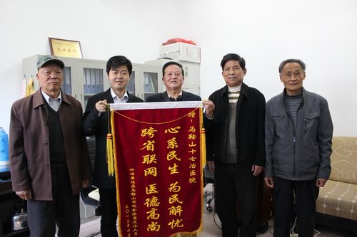 日前,居住在马鞍山市的原中国冶金集团四公司的离退休老同志代表,专程给十七冶医院送来一封感谢信和一面“心系民生,为民解忧,跨省联网,医德高尚”的锦旗。