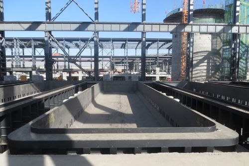 该工程为甘肃东兴铝业酒嘉风电基地高载能特色铝合金节能技术改造项目,主体车间总长度为1267.2米、跨度32米,厂房分4个工作区,其中一区厂房长300余米,设计安装电解槽42台,电解槽槽壳的组对安装是该项目的关键节点。