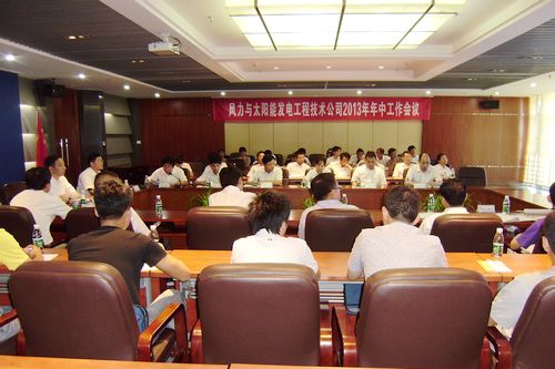 88上午,风力与太阳能发电工程技术公司召开了2013年年中工作会,传达贯彻集团公司年中会议精神,对上半年各项工作进行总结,确定下半年主要工作目标。公司领导班子、各工程处和机关全体管理人员参加了会议,各项目经理部以视频形式参加会议。