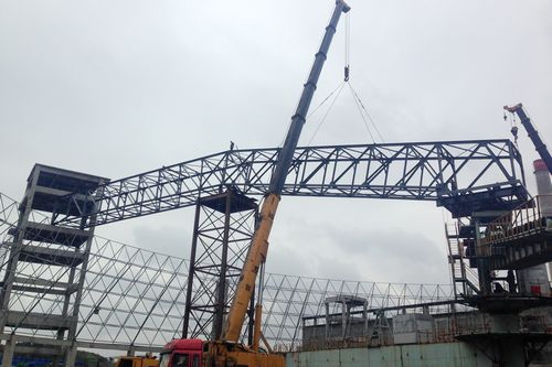 梁平海螺一期石灰石均化堆场罗式桁架吊装完成