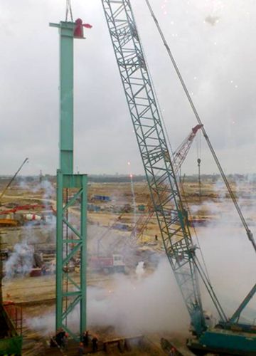 宝钢湛江炼钢工程钢水罐维修间首根钢柱吊装成功