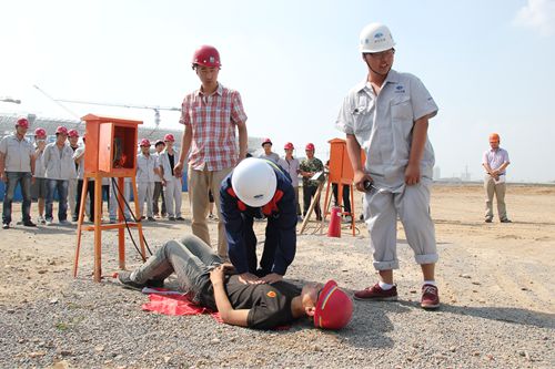 624,沈阳南站项目针对施工现场的实际情况,举行了一次触电起火的应急救援演练。通过生动、形象的应急演练,使员工熟练掌握了触电自救的技能,提高了全员面对突发事件时的反应速度和进行应急救援的能力,增强了各部门的协调配合能力。