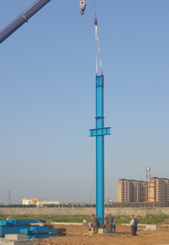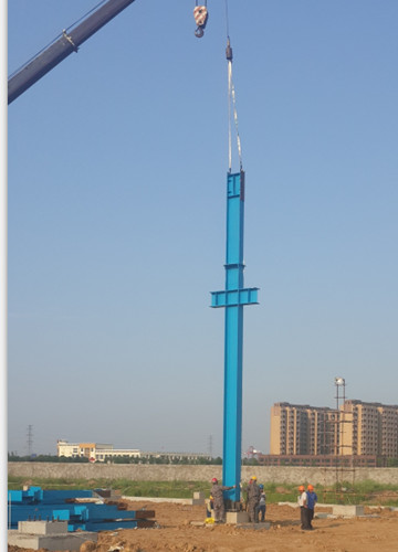 中船九江1#联合厂房工程第一节钢柱顺利吊装